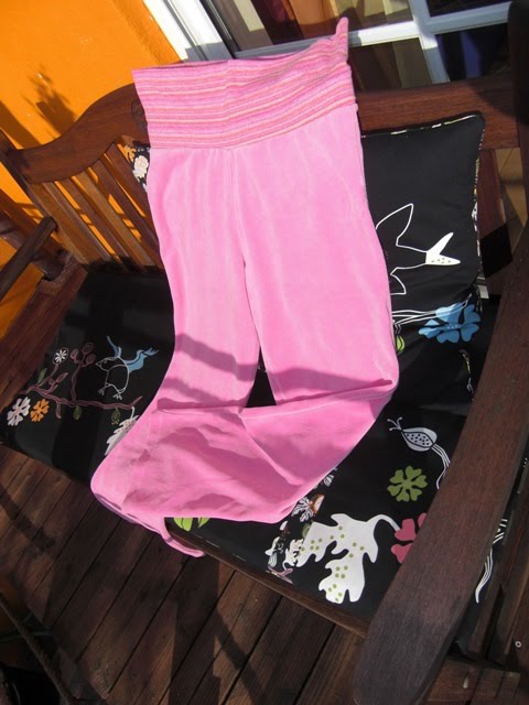…wäre stolz auf mich und meine neue pinkfarbene Kuschelhose ♥. Aus einer älteren Ottobre folgte nun auf die heißgeliebte Grauepanterhose die Nr. 2 aus gut abgelagertem Nicki vom vorvorletzten Stoffmarkt, den ich eigentlich für meine Mini verarbeiten wollte. Deshalb fehlte auch ein Stück und ich habe den Bund mit Jersey gearbeitet und statt dem vorgesehenen Ziehband in der Taille habe ich den Tunnel breiter gemacht und ein bequemes Bundgummi eingezogen. Die Hose ist jetzt so kuschelig, dass ich sie gar nicht mehr ausziehen möchte.