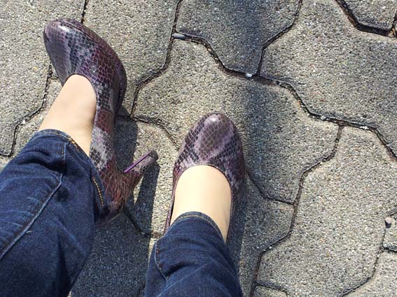 Das ist gut für das gesamte Bein, den Fuß, den Po und den Beckenboden (sehr wichtiger Muskel!). Nach der langen Winterpause in der ich mir Lieblingsstiefel ohne Absatz zugelegt habe, muss sich das Bein erst wieder an die ungewohnte Haltung rantasten. Ein kurzer gang zum Drogisten und zum Discounter sollte da die erste Hürde sein. Ich kam mir vor wie Heidis neue Topmodels bei ihrem ersten Gang über den Laufsteg—> ganz schön staksig. Noch dazu versuchen die Zehen den Fuß durch festkrallen am Rumrutschen zu hindern. Was in Seidenstrümpfen eher schlecht als recht geht und zu späteren Krämpfen führt (und wenn der Mittelfuß krampft, dann tut das richtig weh!)